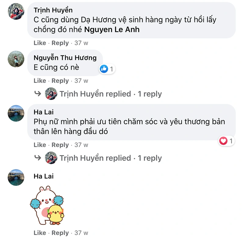 Mình bật mí một sản phẩm giúp mình luôn tự tin, thoải mái hàng ngày nhé. Sản phẩm Dạ Hương tươi mới rất phù rất phù hợp với phụ nữ Á Đông bởi khả năng dưỡng ẩm tự nhiên bằng thảo dược, sử dụng dung dịch dạng gel dễ rửa sạch. Có độ pH phù hợp ngừa viêm nhiễm, nấm ngứa một cách hiệu quả. Với các thành phần Dạ Hương mới cũng được bổ sung thành phần dưỡng da như chiết xuất dâu tằm, collagen, vitamin B3 giúp chăm sóc vùng kín mềm mại vô cùng.