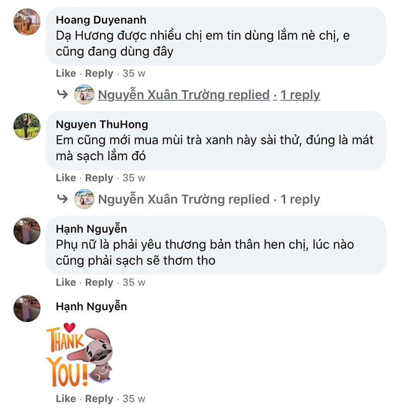 Dạ Hương Hương trà xanh mới với hương thơm tươi mát giúp mình tự tin và thoải mái suốt cả ngày, nên chia sẻ ngay để chị em cùng biết nà. Độ pH phù hợp ngừa viêm nhiễm, nấm ngứa một cách hiệu quả.